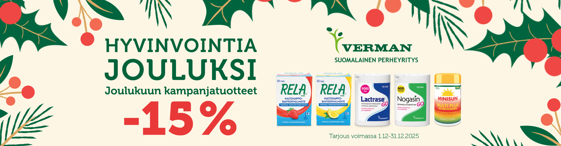 Verkon kautta voit tilata niin resepti- kuin itsehoitovalmisteitakin. Verkkokauppa on avoinna 24/7, ja käsittelemme tilauksia maanantaista perjantaihin klo 10-16 välisenä aikana. Noutolokeroon saat tuotteen usein jo tilauspäivänä.
