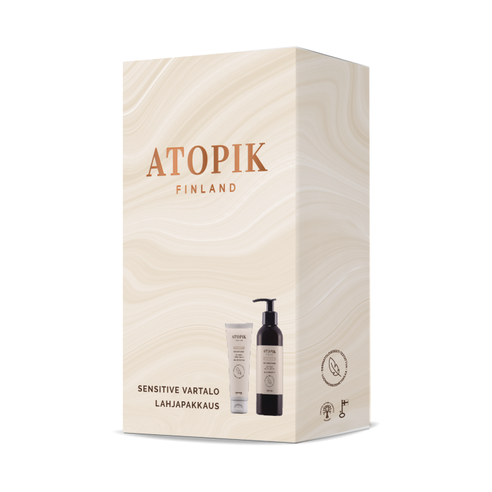 Sensitive Käsivoide: Aqua, Cetearyl Alcohol, Vitis Vinifera Seed Oil (Viinirypäle/Grape), Caprylic/Capric Triglyceride, Glycerin, Cetearyl Glucoside, Avena Sativa Kernel Extract (Kaura/Oat), Inulin (Prebiotic), Alpha-Glucan Oligosaccharide (Prebiotic), Ceramide NP, Xanthan Gum, Sodium Benzoate, Potassium Sorbate, Lactic Acid